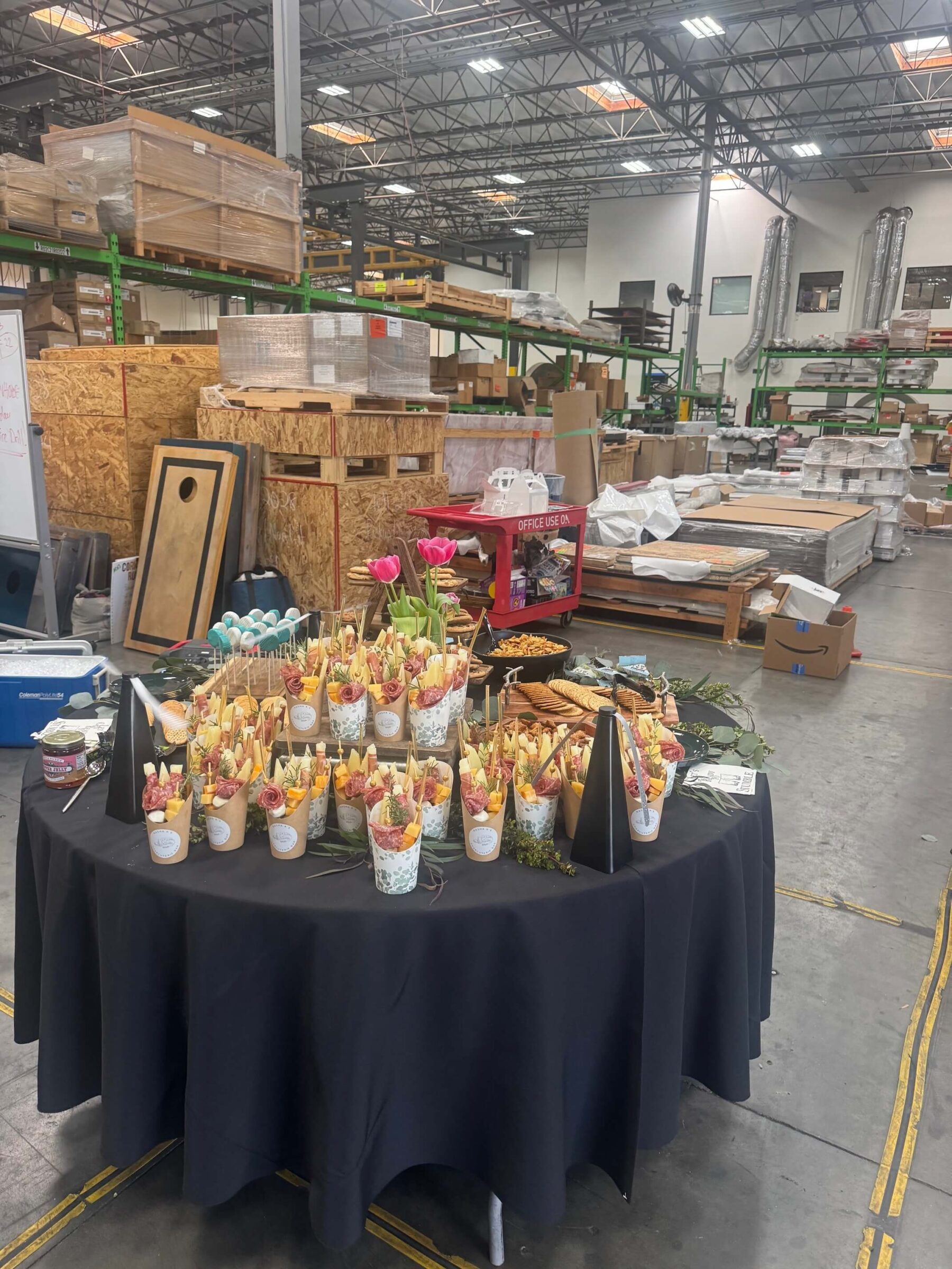 Attendees enjoyed an exclusive shop tour, giving everyone a behind-the-scenes look while also setting the stage for conversation. The intimate setting made it easy to connect, catch up with familiar faces, and meet new ones along the way. Of course, no great event is complete without amazing food—guests were treated to delicious, beautifully crafted charcuterie bites made by Kasha herself (a definite highlight!), along with drinks to sip on throughout the evening. And as a sweet takeaway, everyone had the chance to bring home gorgeous fresh tulips, adding a thoughtful and memorable touch.